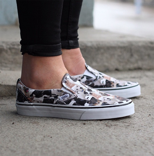 รองเท้าผ้าใบทรง slip on ที่สวมใส่ง่ายพร้อมกับลวดลายที่สวยงามดูอินเทรนด์สุดๆ บอกเลยว่าฮิตมากๆๆ