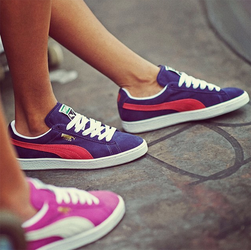 รองเท้าผ้าใบหนังกลับที่มองแวบเดียวก็รู้แล้วว่าเป็นแบรนด์ Puma รุ่นนี้เคยเลิกผลิตไปแล้วหนหนึ่ง แต่ตอนนี้เริ่มบูมขึ้นมาอีกครั้ง สาวๆที่อยากย้อนอดีตระลึกความทรงจำครั้นตอนยังเป็นวัยรุ่นอยู่ก็รีบหามาจับจองซะก่อนที่จะหายากนะจ๊ะ